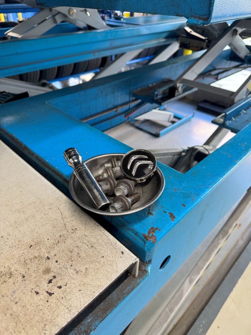 倉庫で保管してもらっている冬タイヤに交換です。